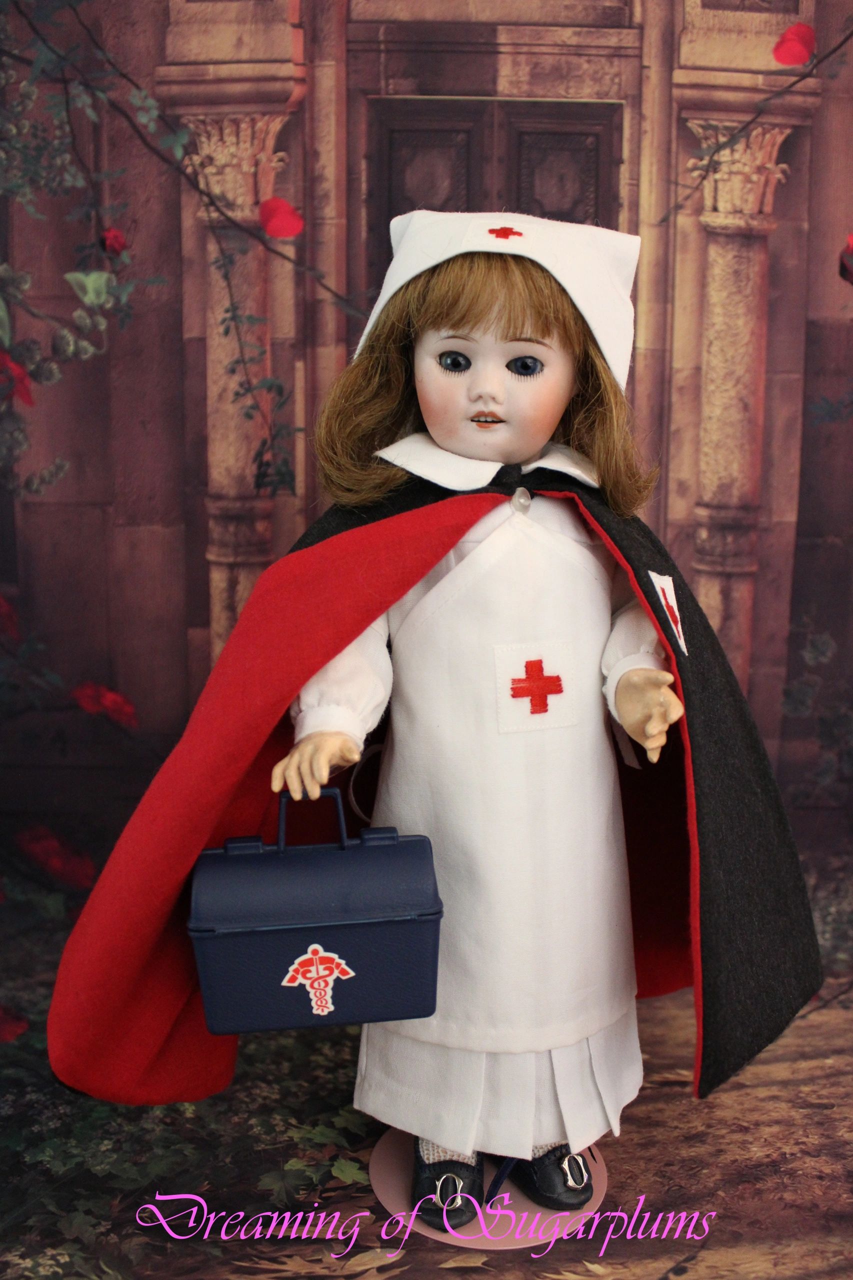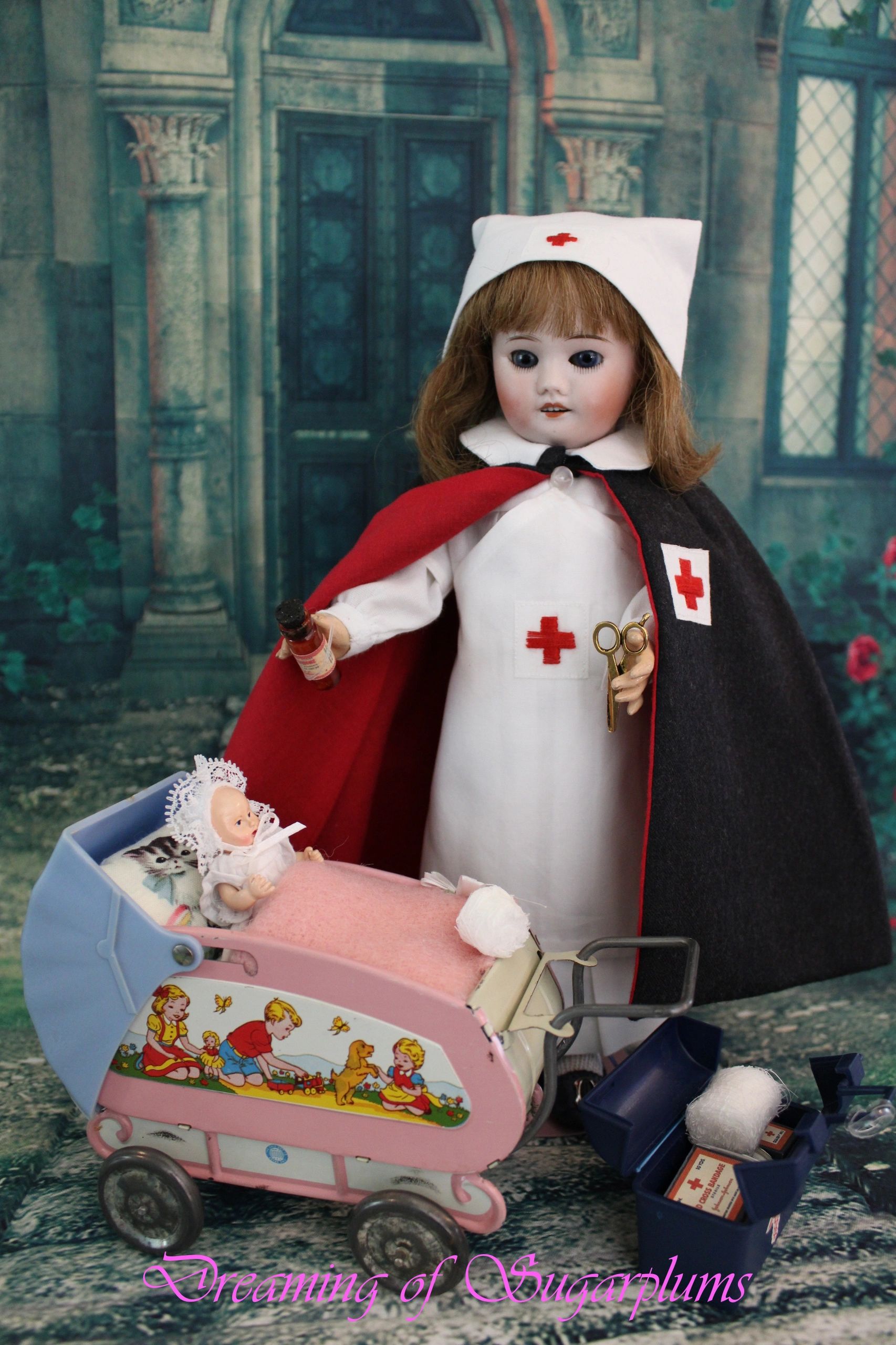 ~ Ellison Versailles, a beautiful Antique Bleuette SFBJ 60 Paris 8/0 is modeling a G-L reproduction 1914 Costume d'Infirmiere de la Croix rouge. ~,