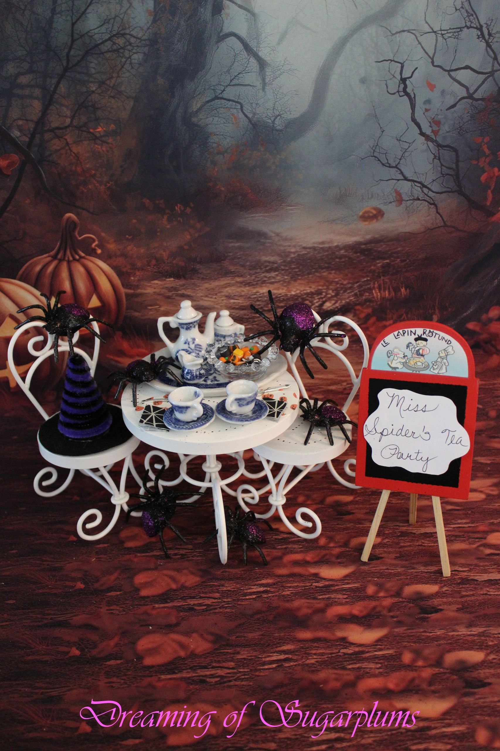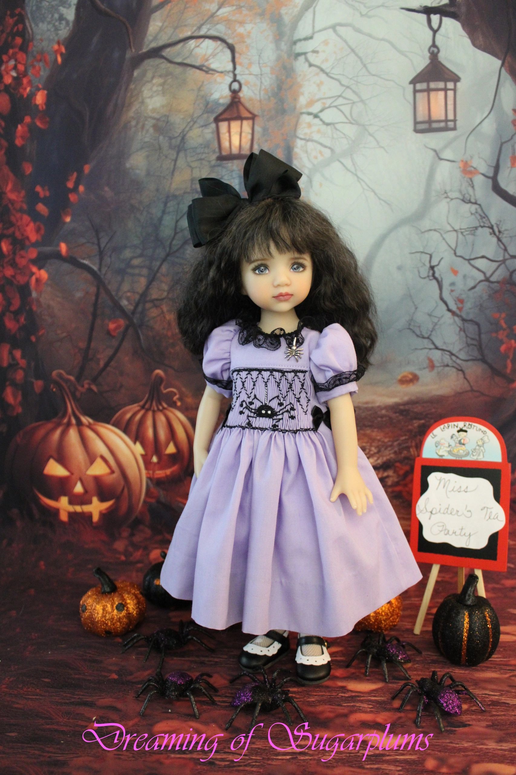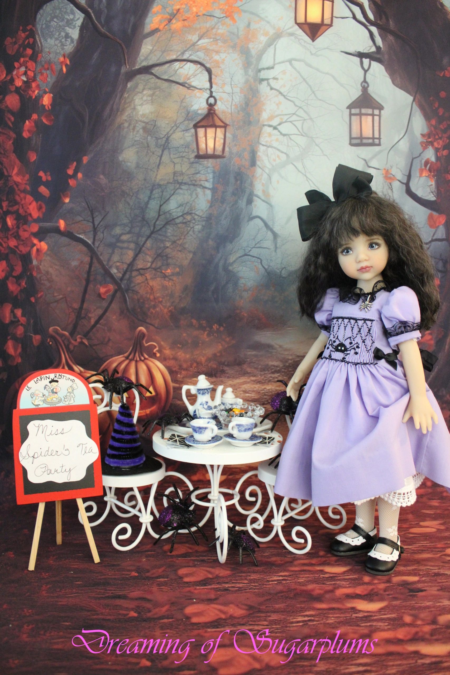 ~ Miss Spider's Tea Party ~ Aurora Charlotte, my #5 Little Darling is modeling this fun OOAK hand smocked Halloween ensemble. She is hosting the tea party for her spider friends. ~